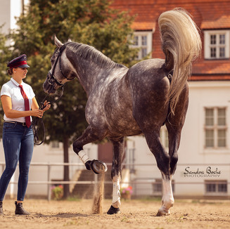 Kurze Zeit später ging es dann auch schon los. Das erste Model wartet auf uns, ein prächtiger Hengst. Ich glaube die genaue Reihenfolge der ganzen Shootings die wir gemacht haben bekomme ich nicht mehr zusammen aber ich sie euch gern auf. Wir hatten fotografieren im Grünen, vor schwarzen Hintergrund, vor weißem Hintergrund im Stall, mit Uniform, Stute mit Fohlen, Military Sprünge, fotografieren auf dem Stoppelfeld, eine Kutsche mit Friesen, Detailaufnahmen und wir waren bei den Norikern. Und wer mich kennt, weiß, ich liebe Noriker.